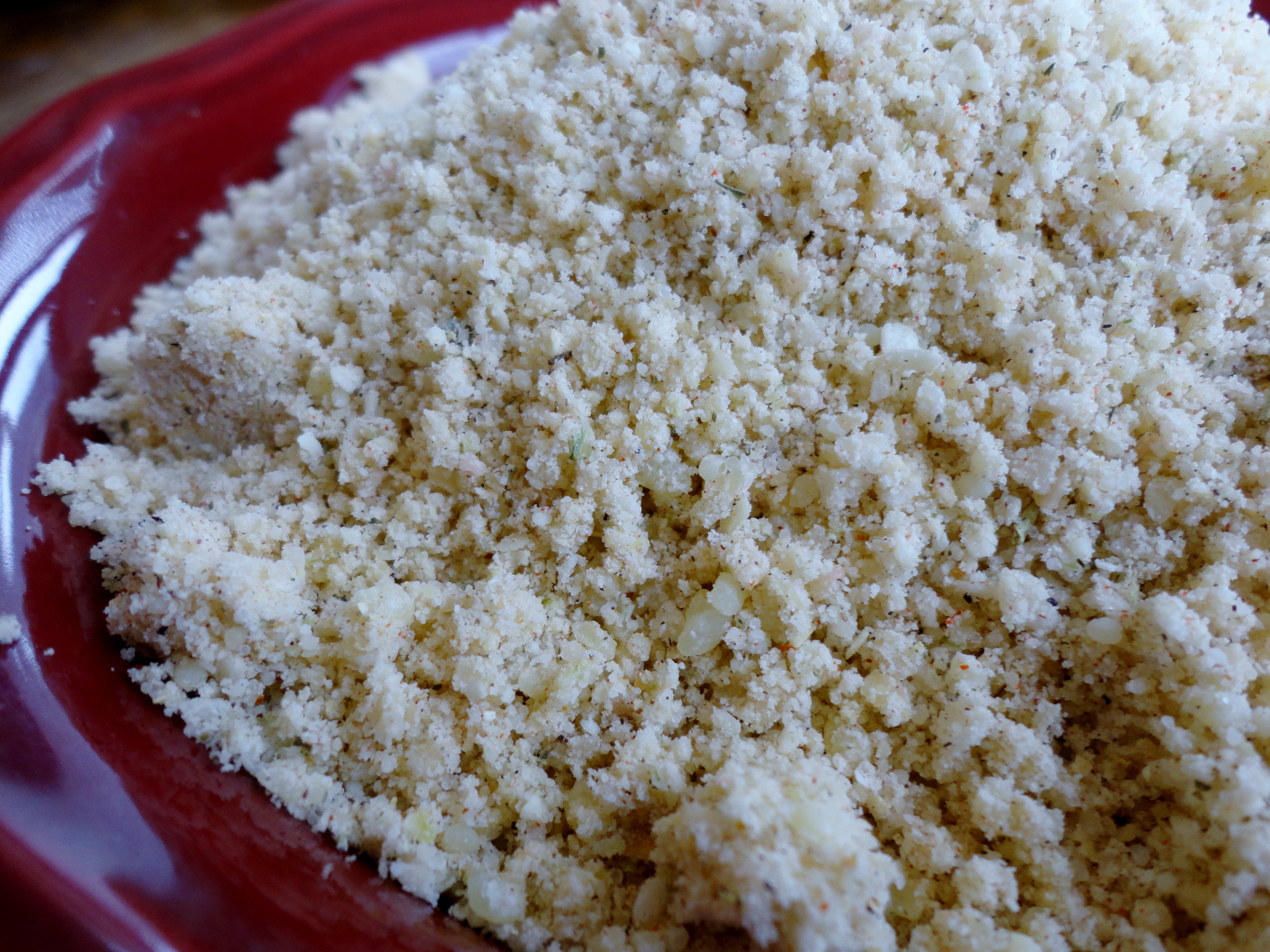 This is a fabulous low-carb, gluten-free substitute for breading that can be used as a coating for things you’re either going to be baking or frying. I use it on both chicken and fish (it’s best for mild white fish, though it’s pretty good on salmon too) and have even added it to meatloaf*. I prefer this tremendously over any other coating I’ve used, as it has so much flavor in comparison to even seasoned breadcrumbs. The first time I used it on fish, my husband said, “this is like…onion ring-fried fish!!” While this breading isn’t overly onion-y (in my opinion, it is perfectly seasoned), I will say that if you like onion rings, you’re going to love it as it does lend a similar flavor and texture experience to your meal. I hope you enjoy!