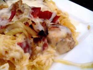 Garlic Chicken & Bacon Spaghetti Squash Alfredo