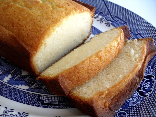 If you aren’t already aware of it, you can confirm my undying love for cake by just taking a look at the long list of recipes I have posted for them (I have more cake recipes than anything else!).  But pound cake has never been my thing.  Which is just weird, because when it comes to cake, I’m all about the richness, and pound cake certainly fits that bill.  Perhaps it’s because pound cakes are served without frosting, and unlike certain aliens living among us (Ahem, my sisters! Imposters, I tell you.), I value my frosting and cake equally. However, this is one good pound cake.  Totally crazy-buttery with that soft and dense pound-cake texture.  A perfect base for a sweetened-berry topping and a dollop of whipped cream, or for a red, white and blue trifle, cubed and layered with berries and whipped cream.